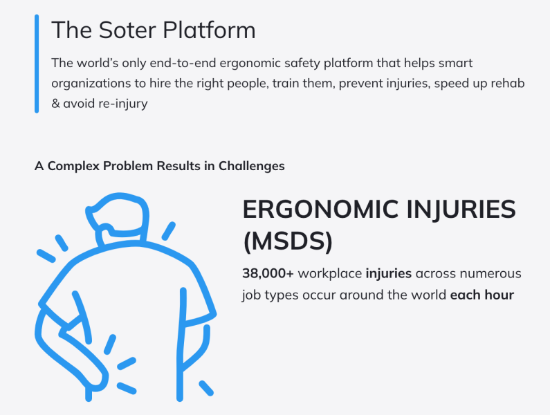 Soter Analytics is an ergonomics tech company and developer of the SoterCoach wearable device that helps reduce the risk of ergonomic injuries.