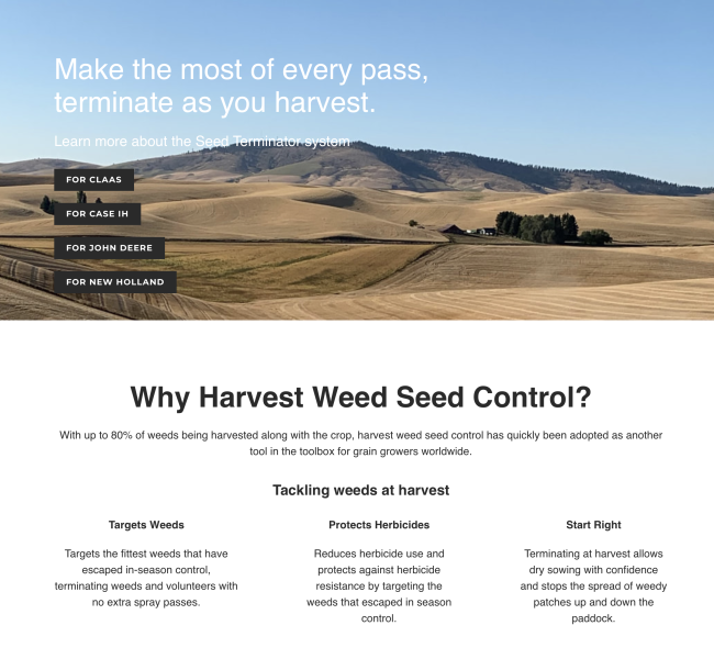 Seed Terminator is a simple attachment to the combine harvester that terminates weed seeds before they become weeds.