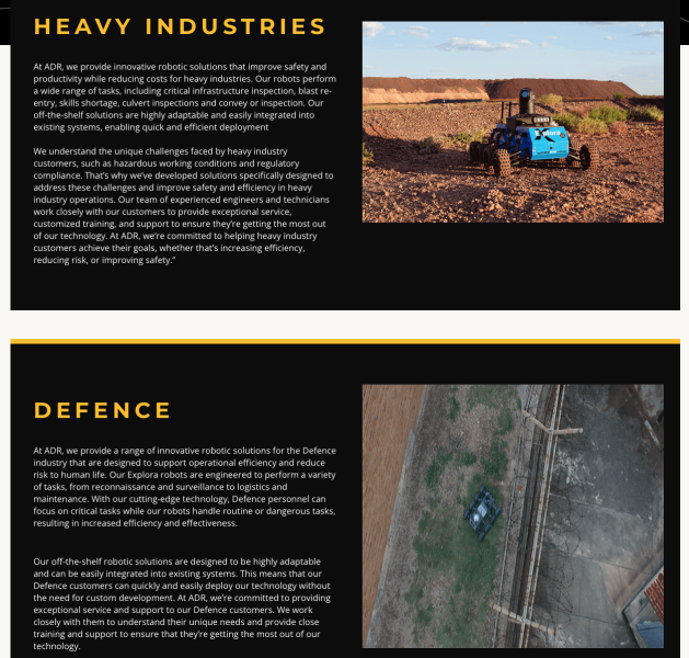 Australian Droid + Robot (ADR) offer a range of products and services based on our extensive experience in remotely operated systems. From remote inspection of inaccessible areas to the design and construction of specialised ground and aerial robots, we provide fully-integrated robotic solutions.