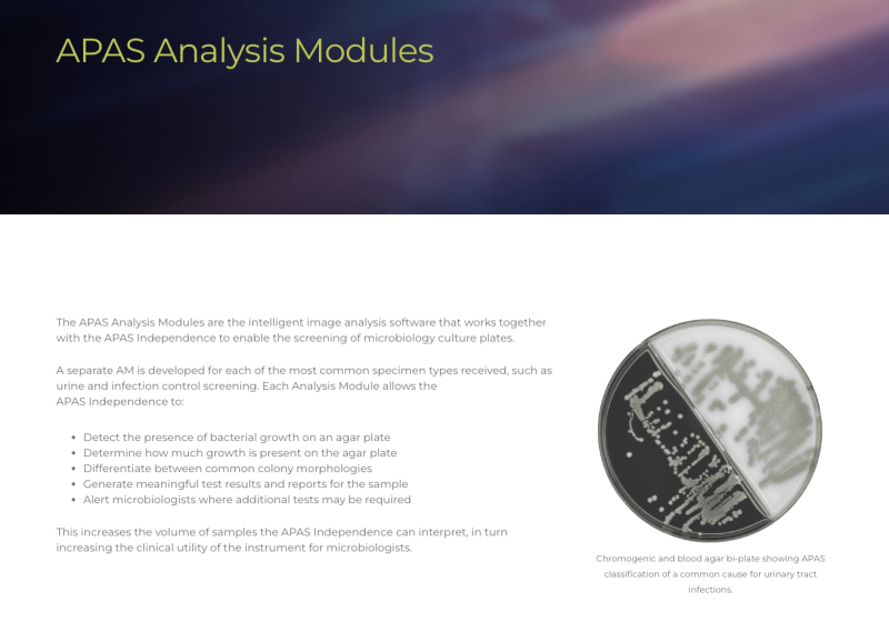 Microbiology Culture Specimens Automation. Our core capabilities include artificial intelligence, image analysis and software engineering solutions that improve medical diagnostic workflows.